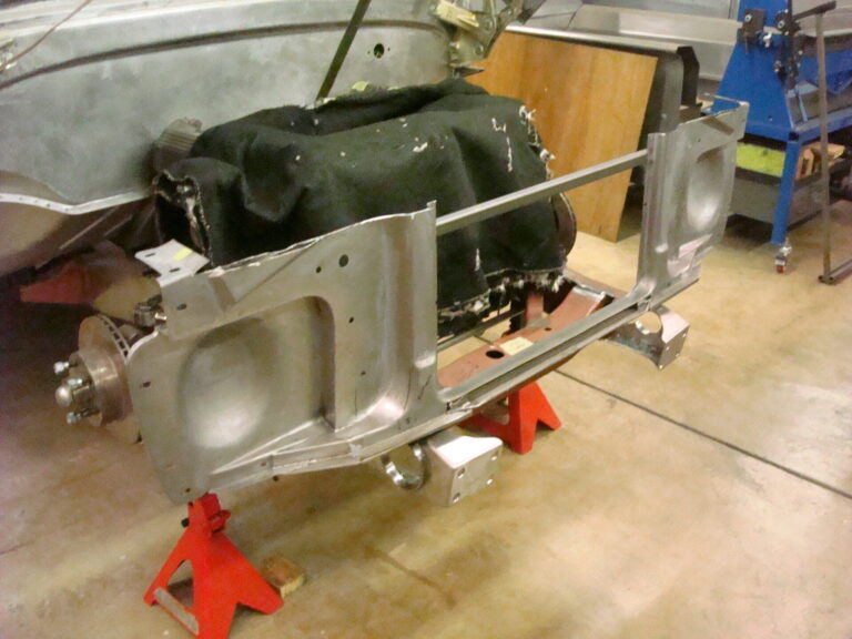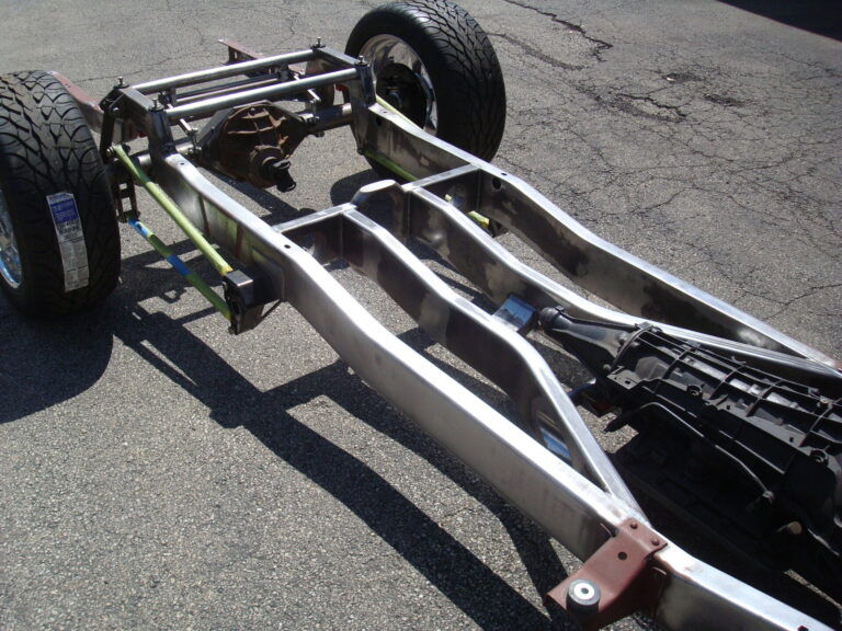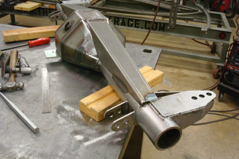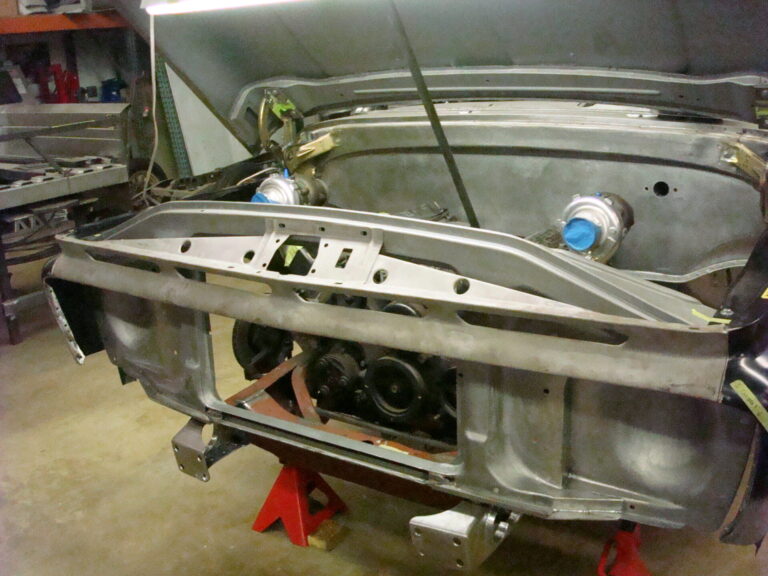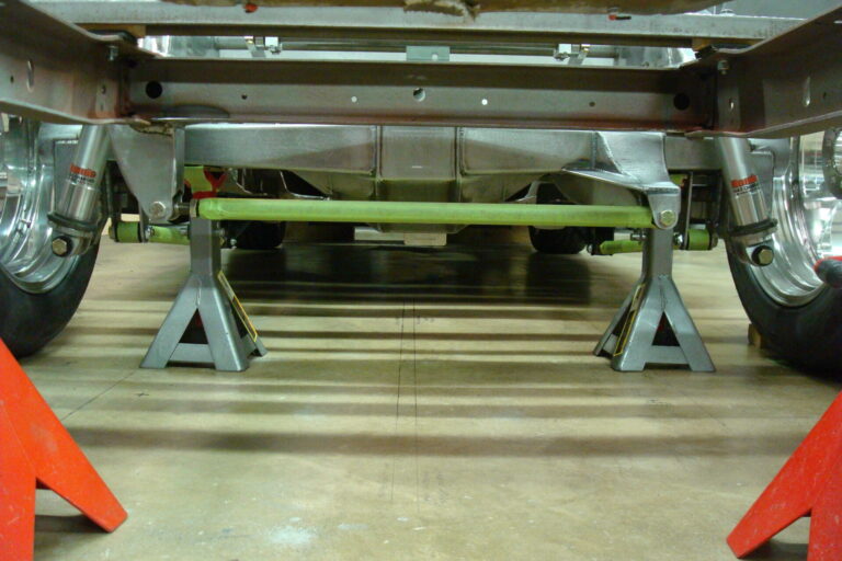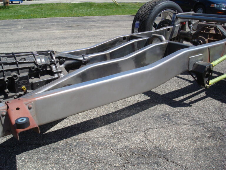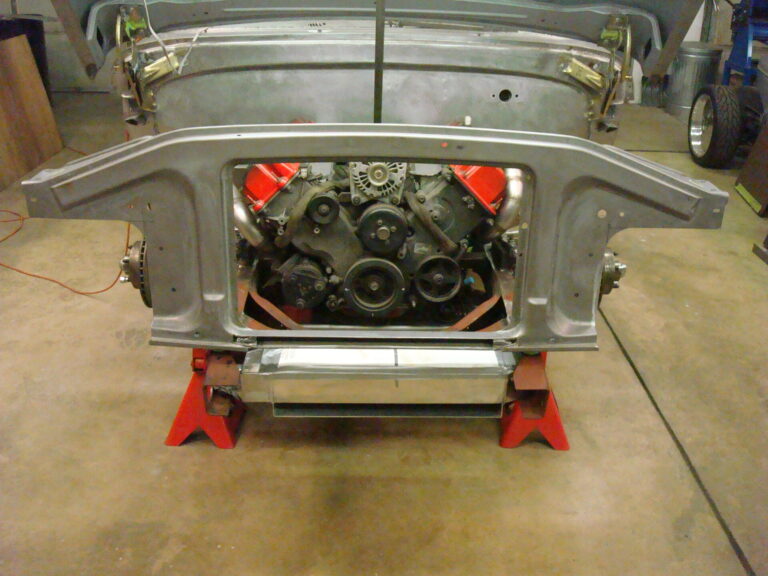 With concept sketch and renderings in hand, John teamed up with his son Jeff Lamb to tackle the running gear. This included the twin-turbo version of a Triton V-10 that Jeff was quite familiar with. This required a new crossmember, independent front suspension, and custom oil pan. Then it was time to get Brian and the rest of the crew at TMG involved to tackle the floor and firewall. After the front of the truck was set, focus was then on the rear four-link suspension, fabricated 9” housing, and truck’s stance. The wheel and tire combination was determined during this phase of construction.