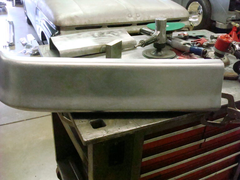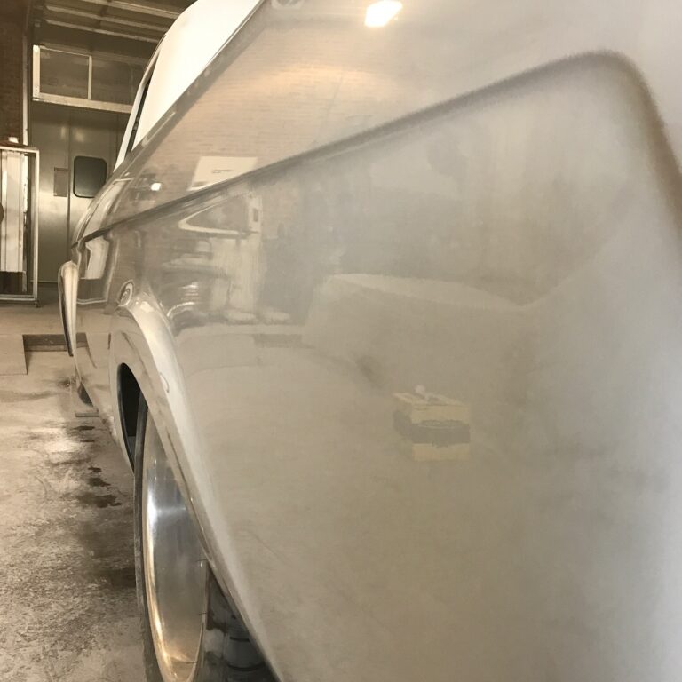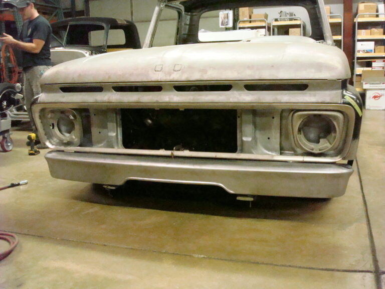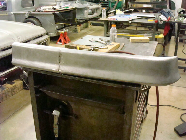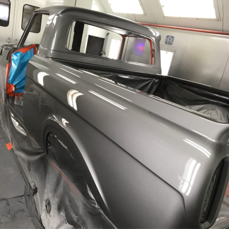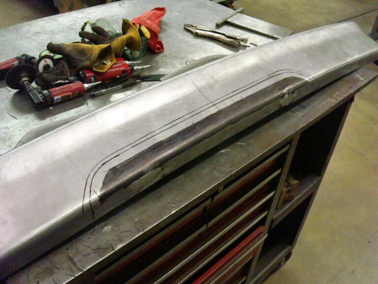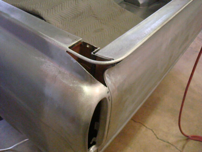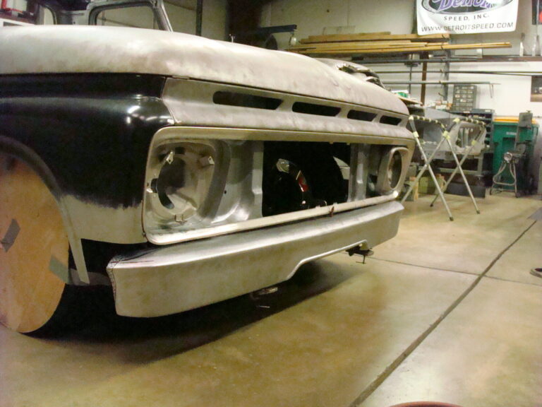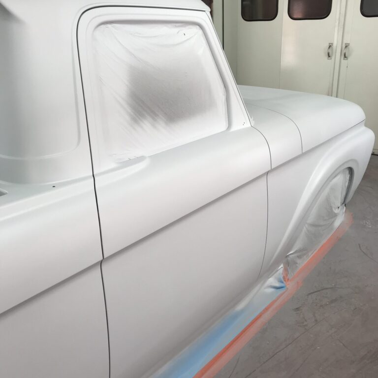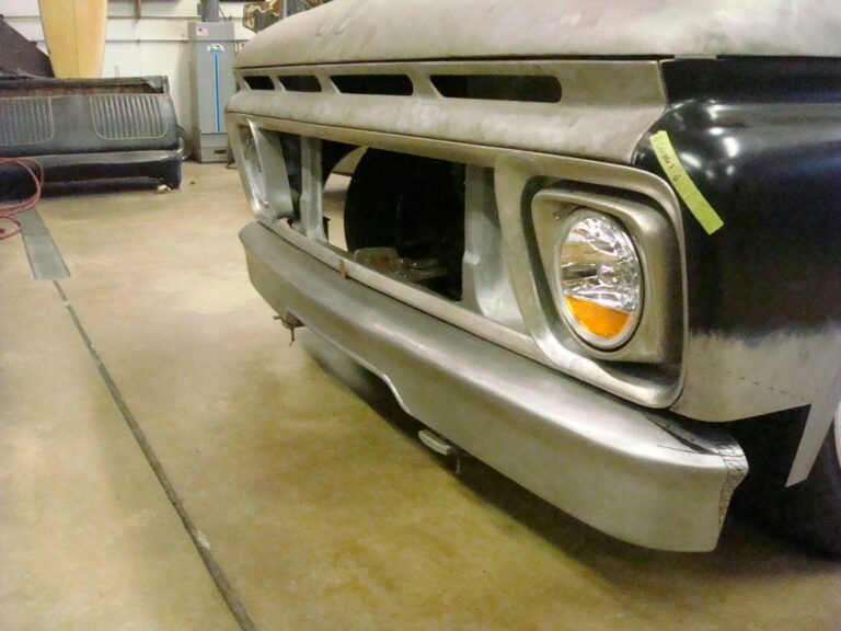 When tackling the cab, there were predictable roof repairs that needed to be made along the drip rails that are commonly found in these old Ford trucks. This is when we decided to radius the drip rails and blend them into the existing body line that runs up the top of the B-pillar. While we were at it, the door handles were shaved, vent windows deleted, and the A-pillar area on the door was reformed to fit the new glass run channels. Then we gapped the doors and made new lower rocker filler strips to correct the lower door gaps and make the bottom edge of the truck one straight line from front to rear.