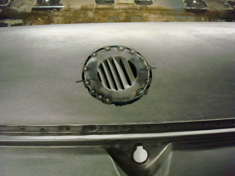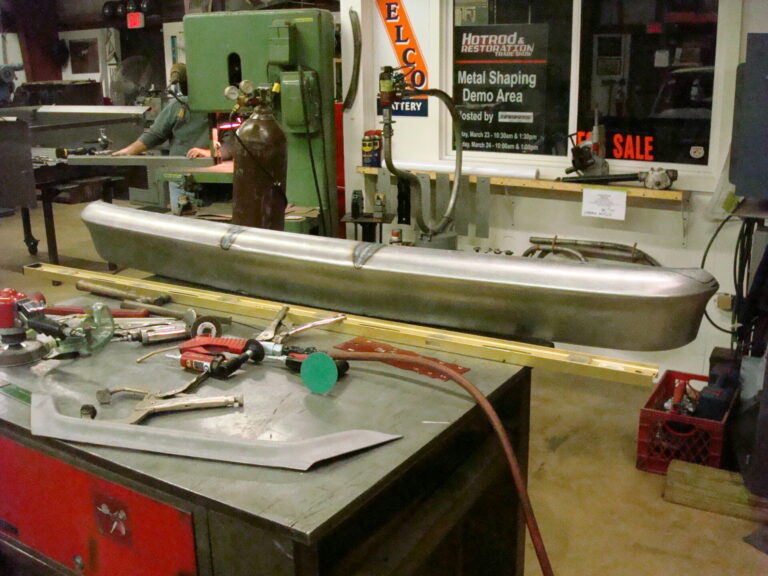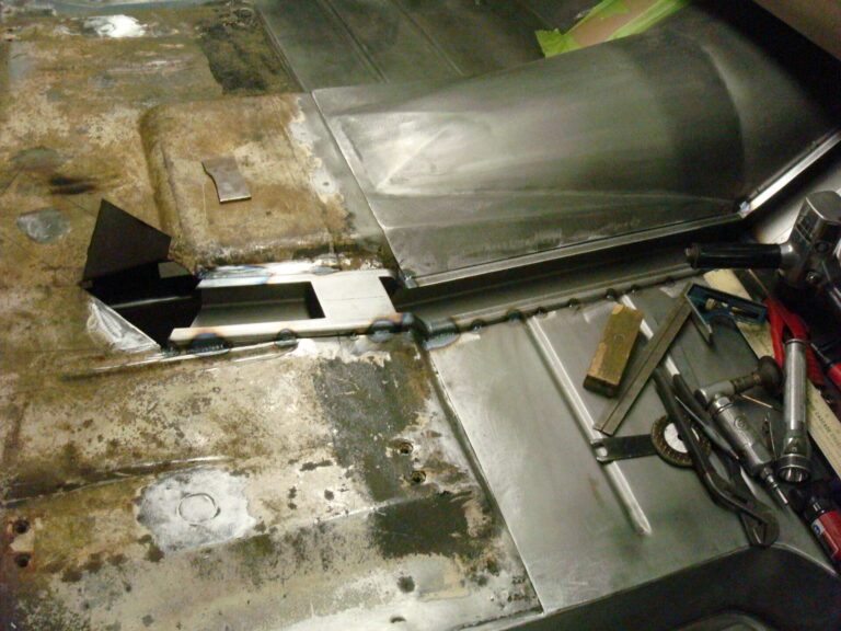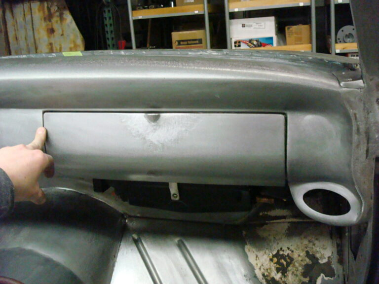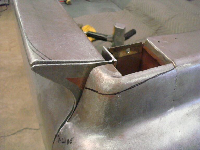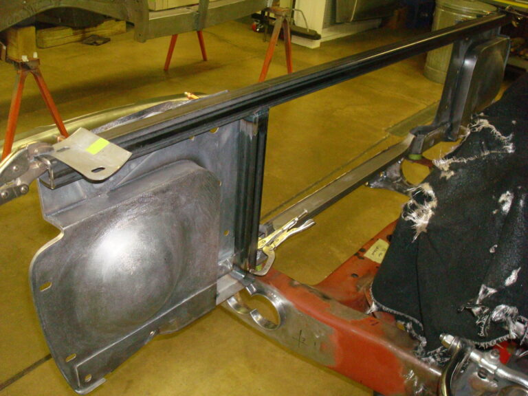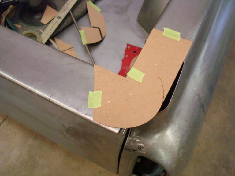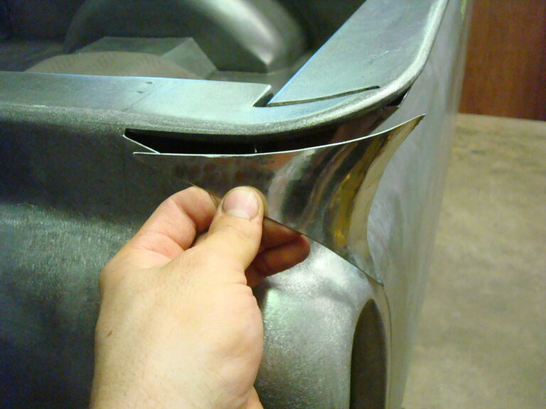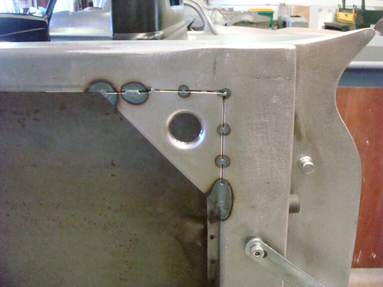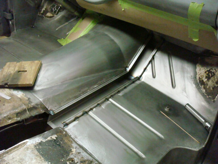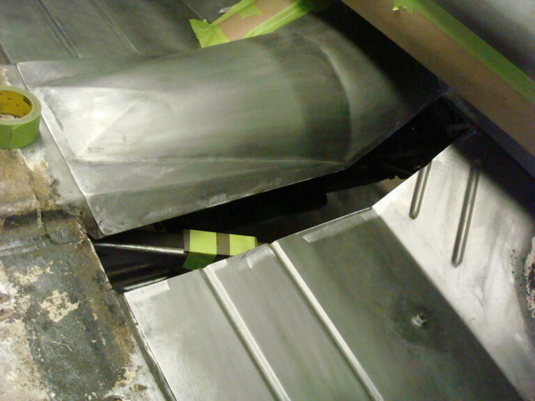 When tackling the cab, there were predictable roof repairs that needed to be made along the drip rails that are commonly found in these old Ford trucks. This is when we decided to radius the drip rails and blend them into the existing body line that runs up the top of the B-pillar. While we were at it, the door handles were shaved, vent windows deleted, and the A-pillar area on the door was reformed to fit the new glass run channels. Then we gapped the doors and made new lower rocker filler strips to correct the lower door gaps and make the bottom edge of the truck one straight line from front to rear.