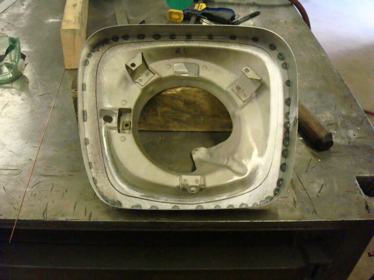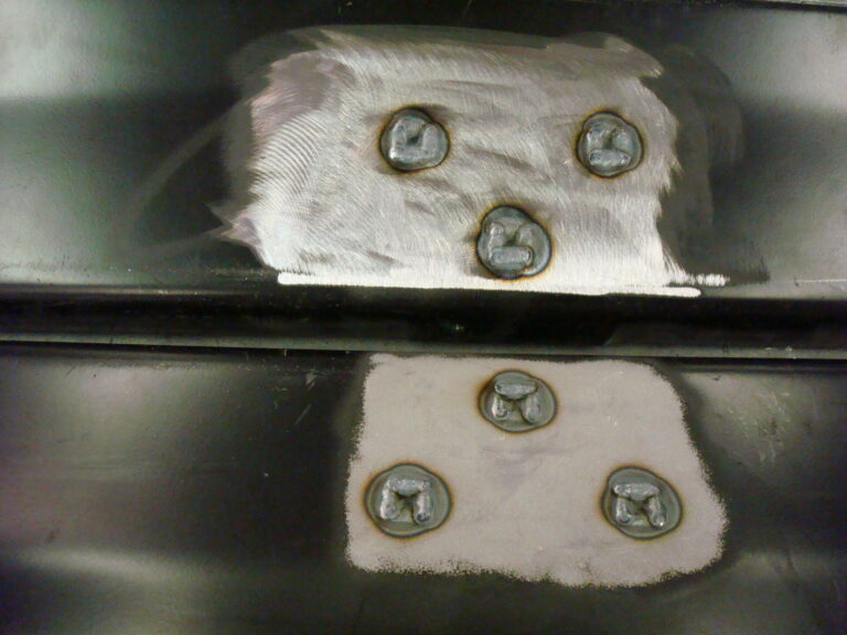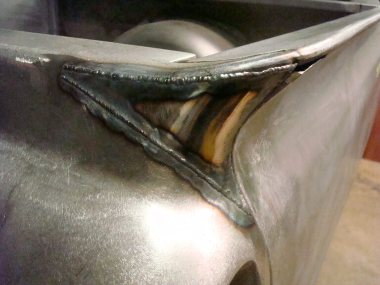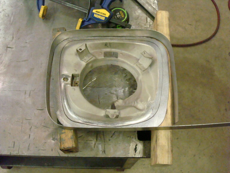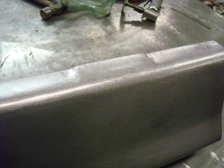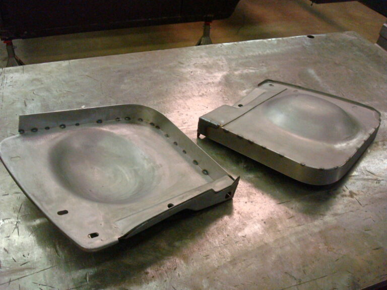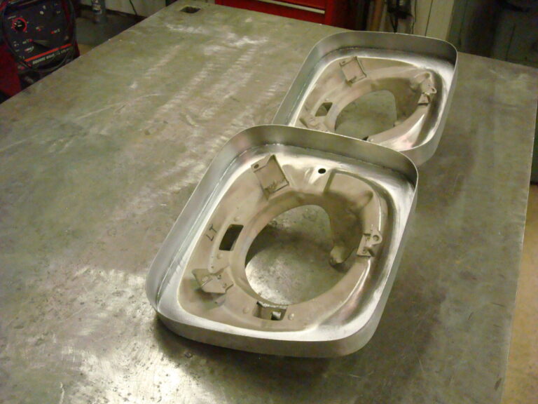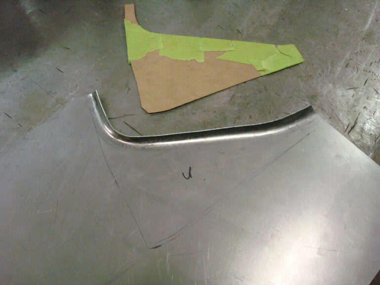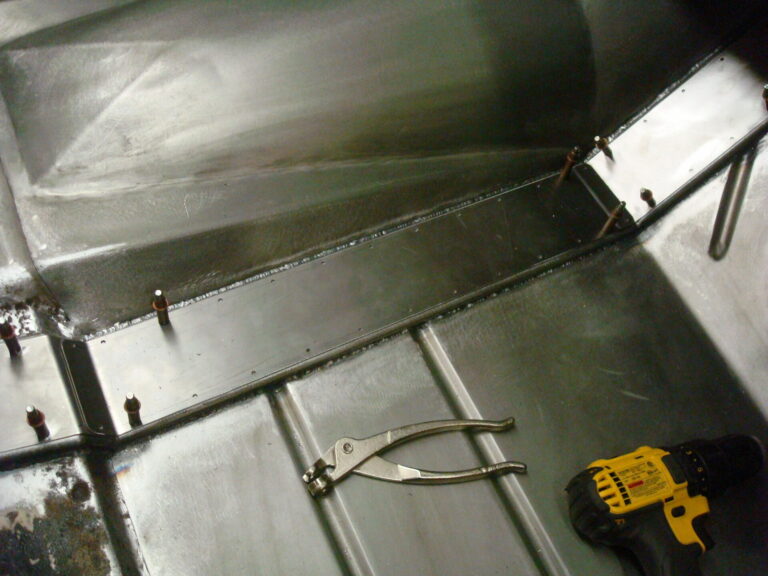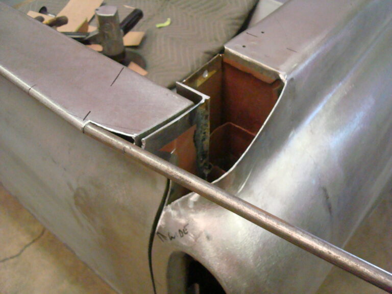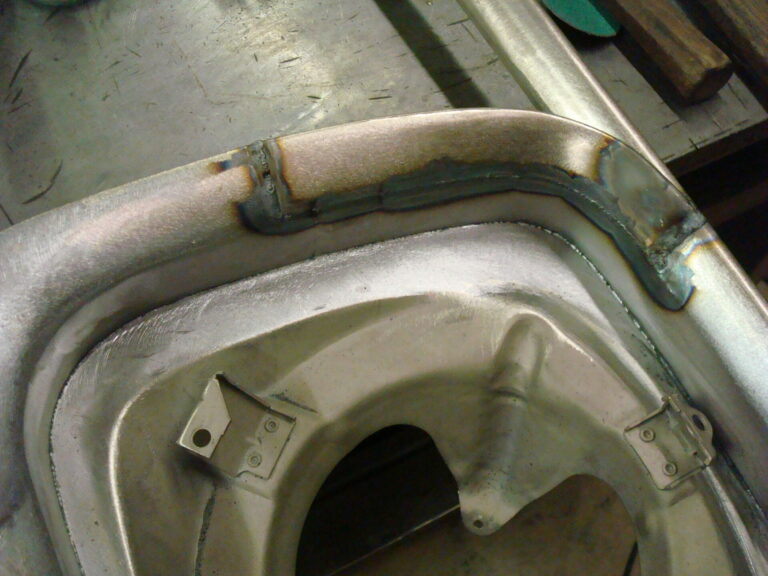 When tackling the cab, there were predictable roof repairs that needed to be made along the drip rails that are commonly found in these old Ford trucks. This is when we decided to radius the drip rails and blend them into the existing body line that runs up the top of the B-pillar. While we were at it, the door handles were shaved, vent windows deleted, and the A-pillar area on the door was reformed to fit the new glass run channels. Then we gapped the doors and made new lower rocker filler strips to correct the lower door gaps and make the bottom edge of the truck one straight line from front to rear.